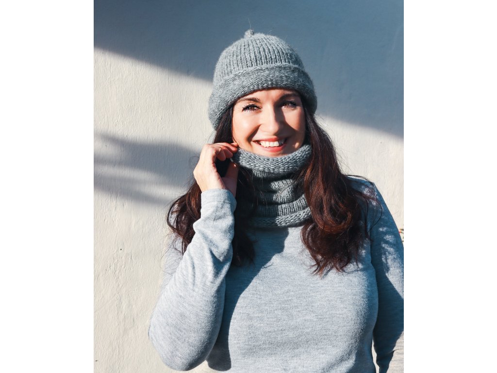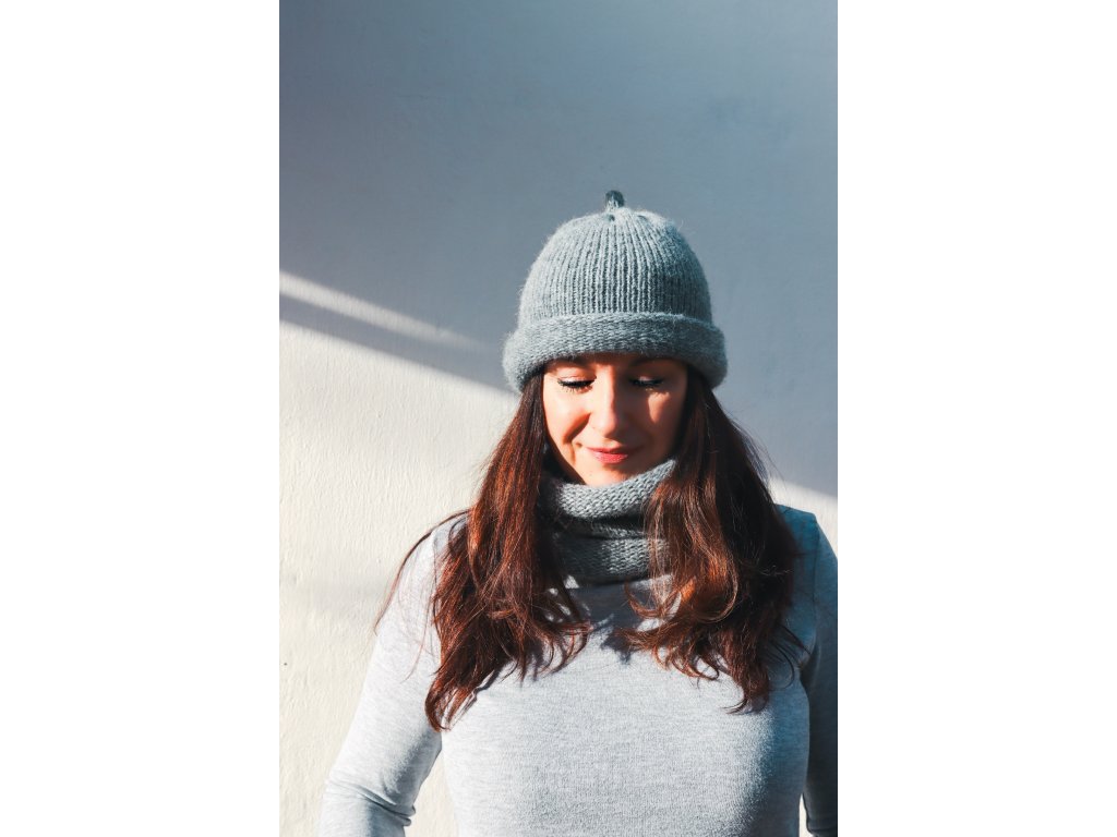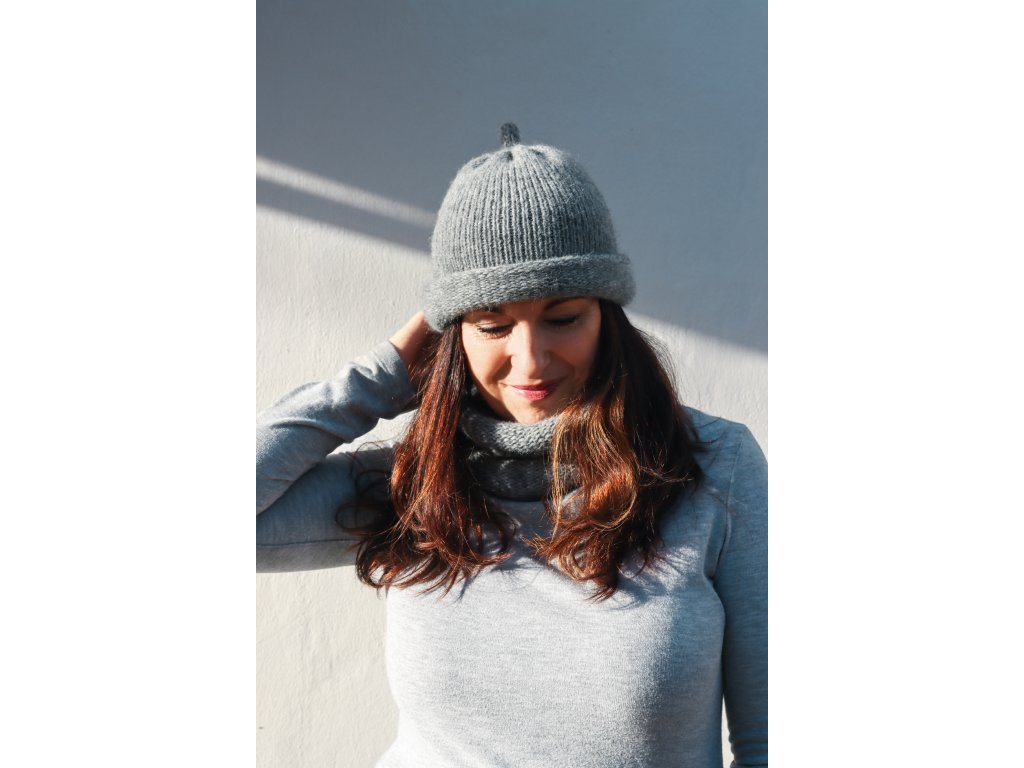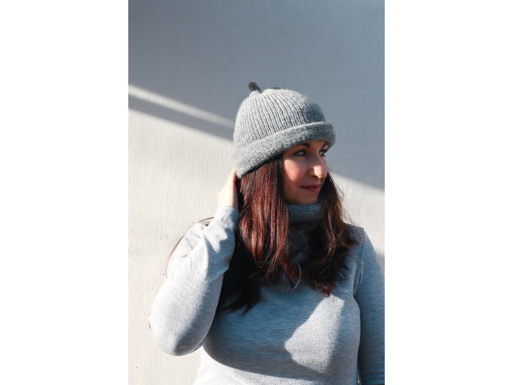 Čepice je pletená z jemné a hřejivé příze s převahou baby alpaky. Je vzdušná a velmi lehká, můžete jednou, nebo dvakrát ohrnout lem.
