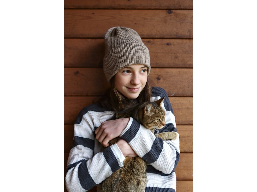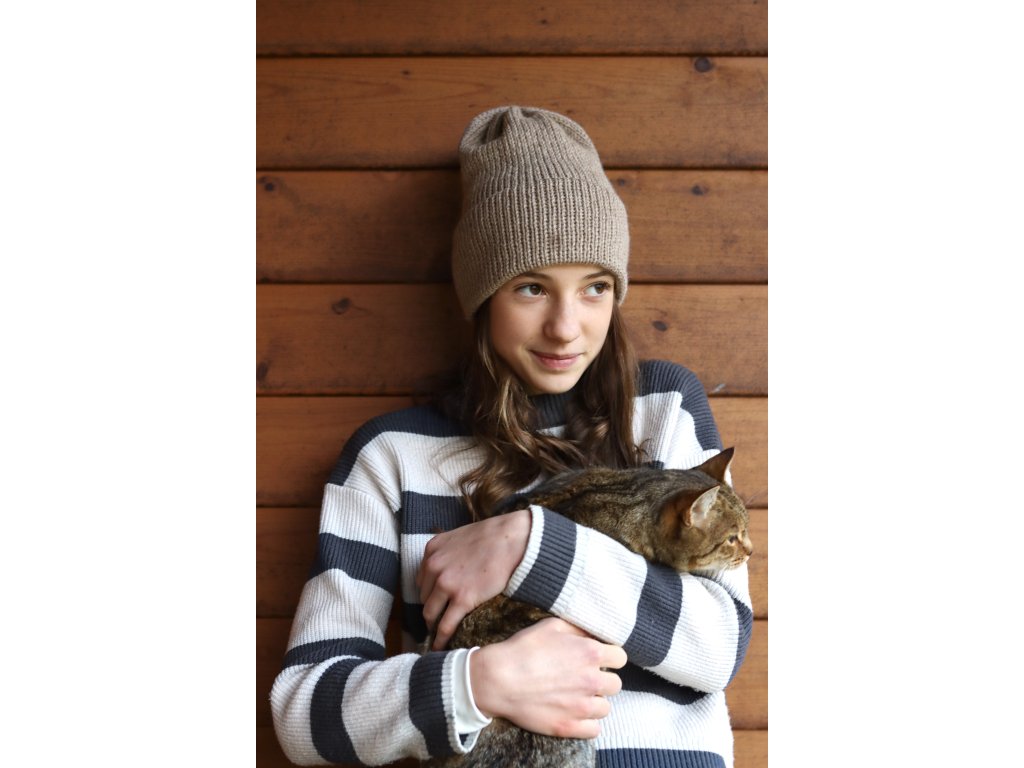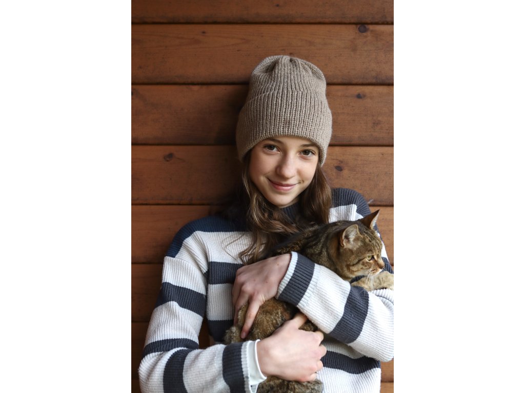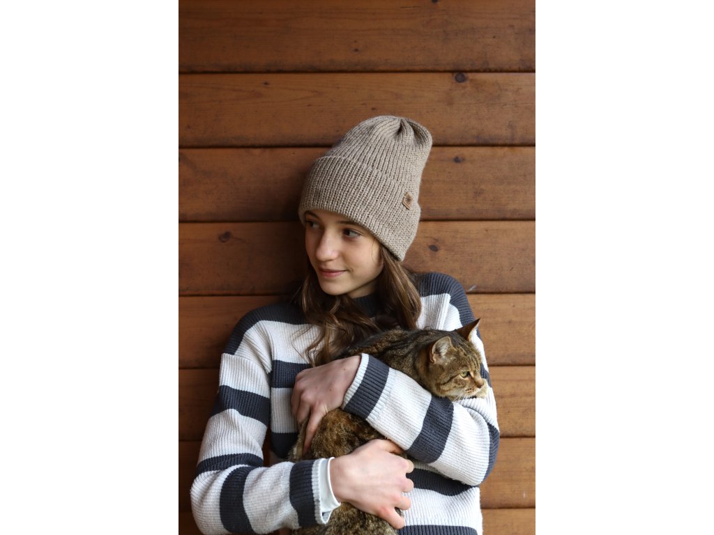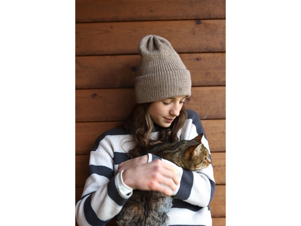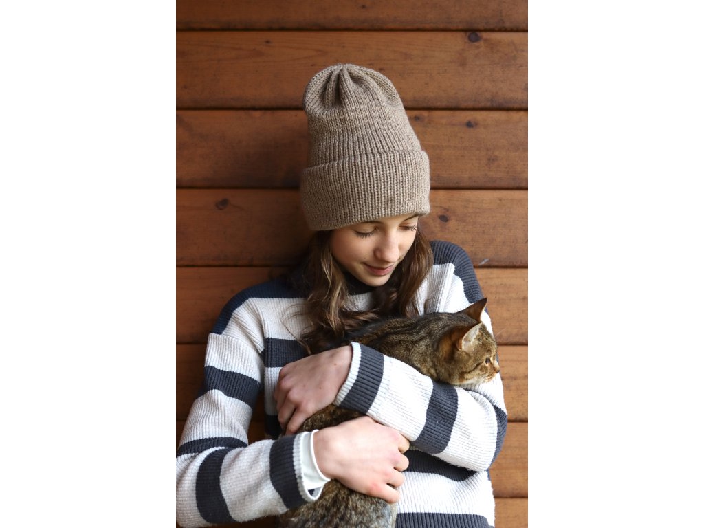Čepice je pletená z hřejivé příze složením vlna a alpaka. Je příjemná, má dvojitý vysoký lem a dobře drží tvar.