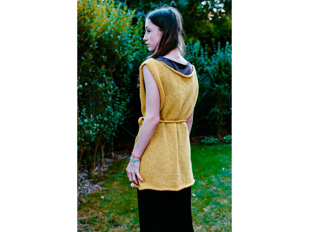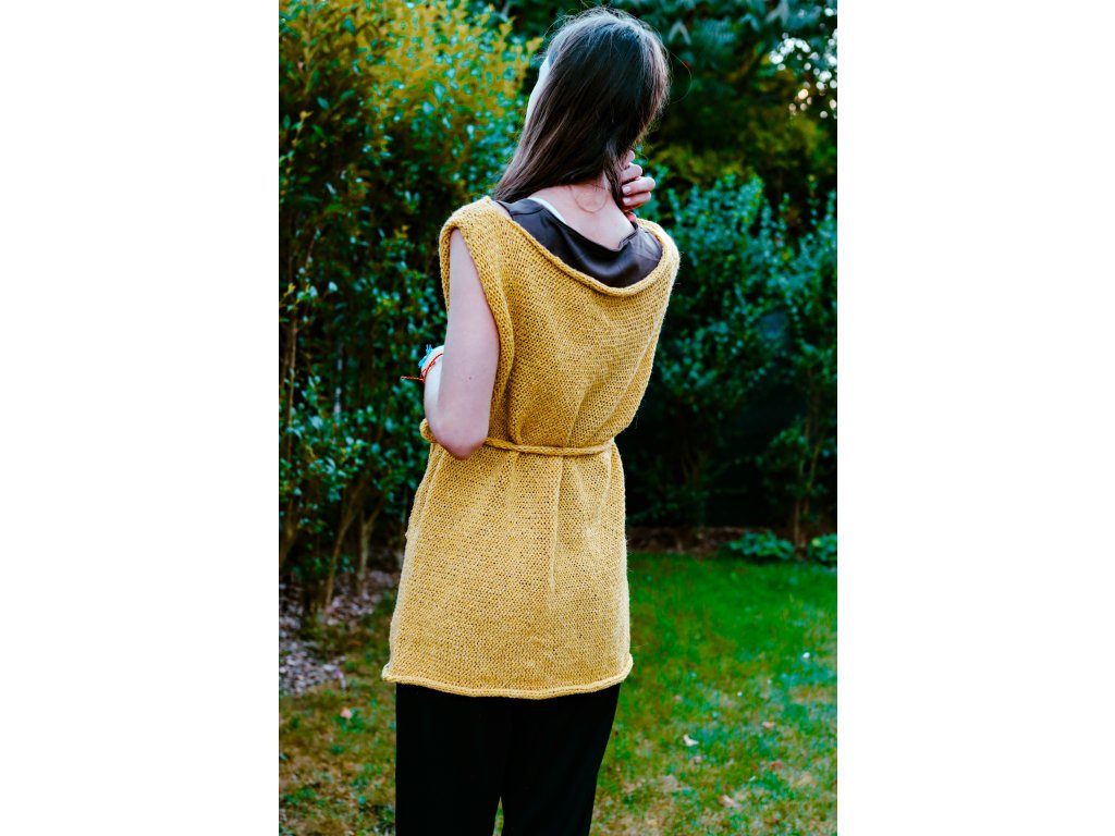 Vesta je upletená z nádherné tvídové příze složením 50% vlna, 25% alpaka a 25% viskóza. Je hřejivá, lehká a přírodního vzhledu. Dá se nosit na triko, rolák, šaty, nebo přímo na tělo.
