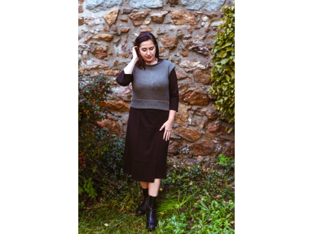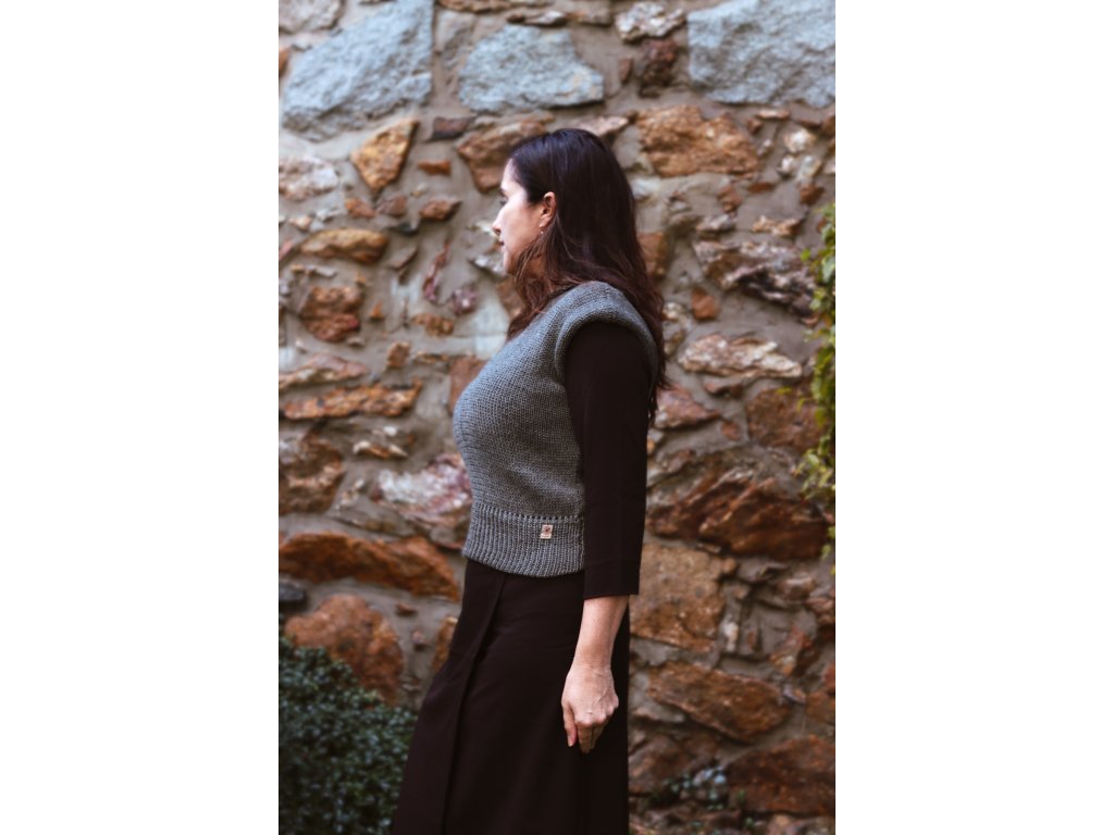 Vesta je pletená z hřejivého, jemného a velmi kvalitního merina. Skvěle se hodí k šatům, džínám i sukni. Délka je do pasu, výstřih lodičkový. Vesta se dobře vejde pod kabát nebo bundu.
