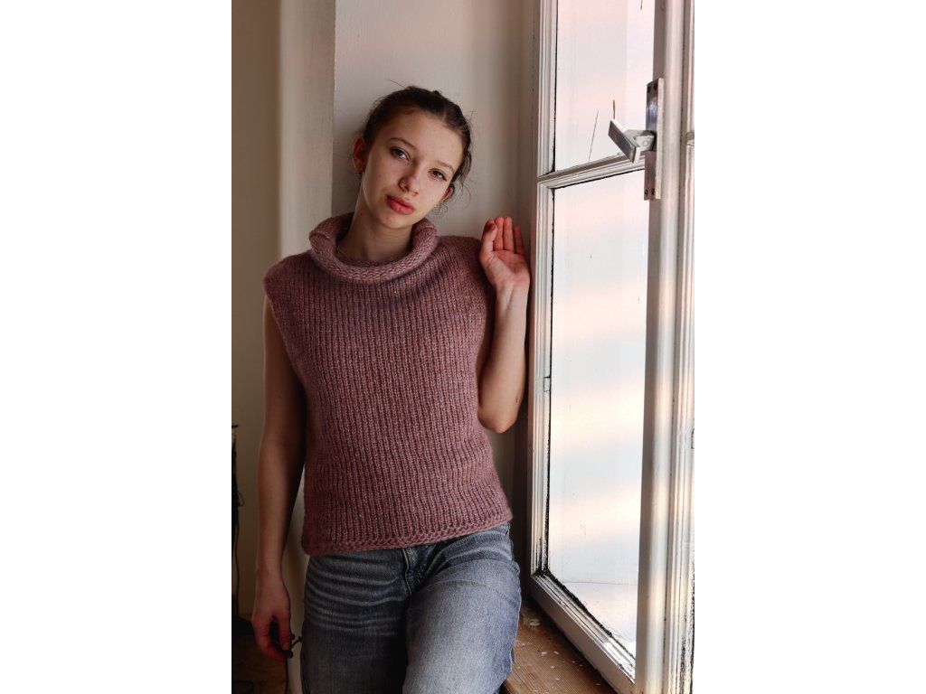 Vesta je pletená z nádherné, vzdušné příze, která je složena z jemné baby alpaky, polyamidu a příjemného hřejivého merina.