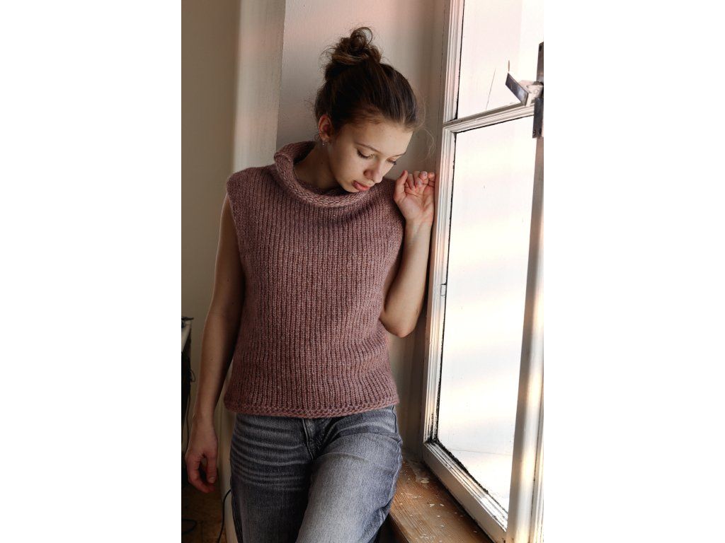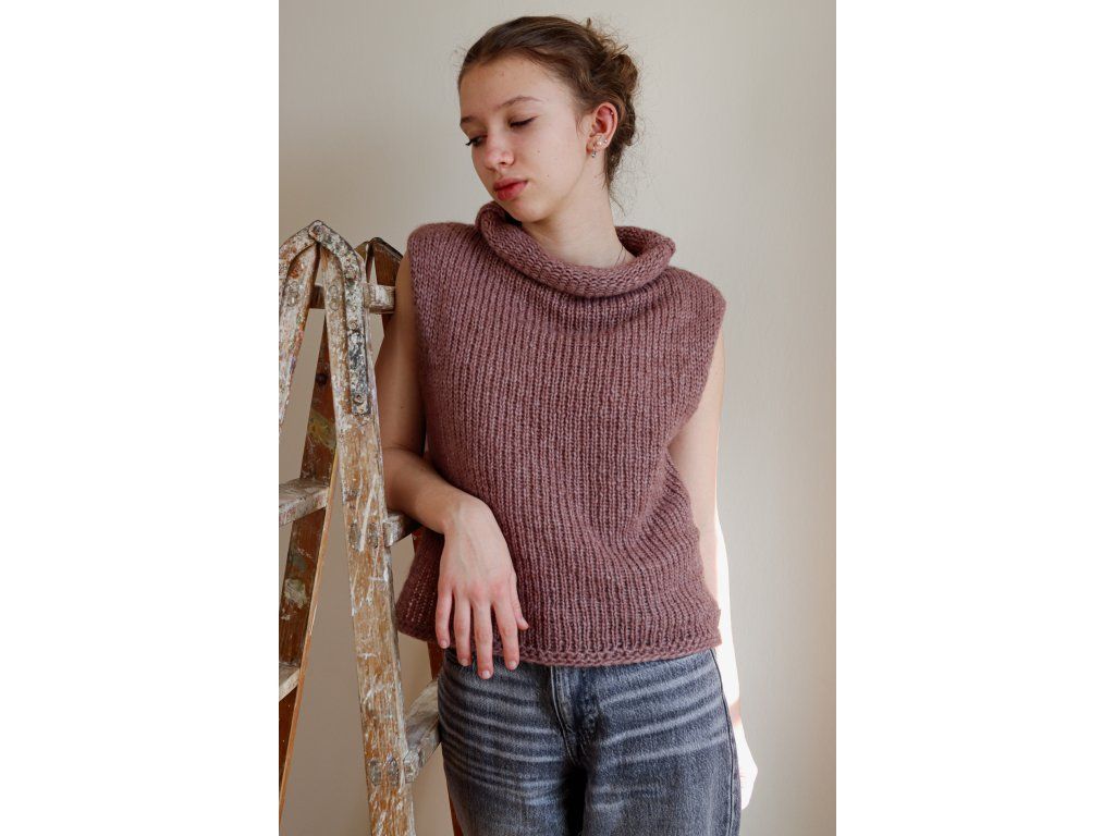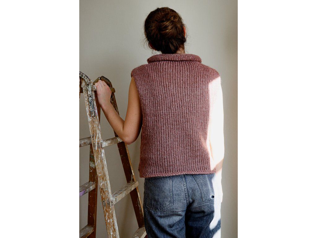 Výsledkem je lehoučký a hřejivý výrobek, který je absolutně nedráždivý a vhodný pro každého. Vesta je kratší, se stojáčkem u krku.