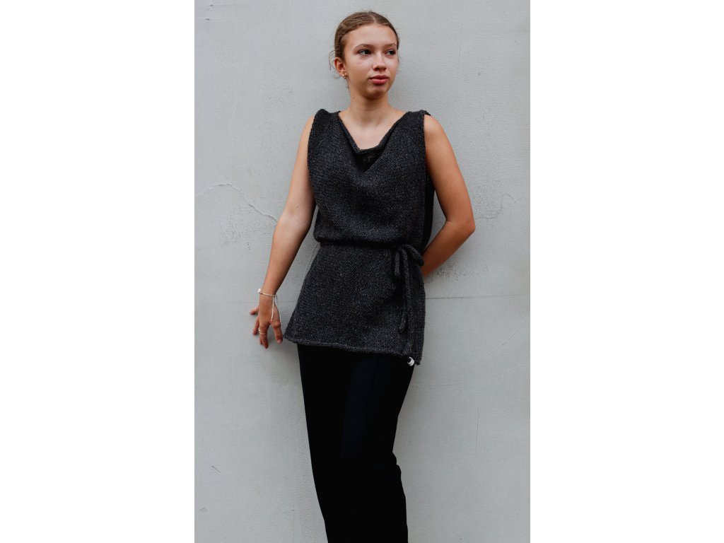 Vesta je upletená z nádherné tvídové příze složením 50% vlna, 25% alpaka a 25% viskóza. Je hřejivá, lehká a přírodního vzhledu. Dá se nosit na triko, rolák, šaty, nebo přímo na tělo.