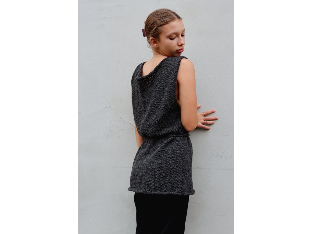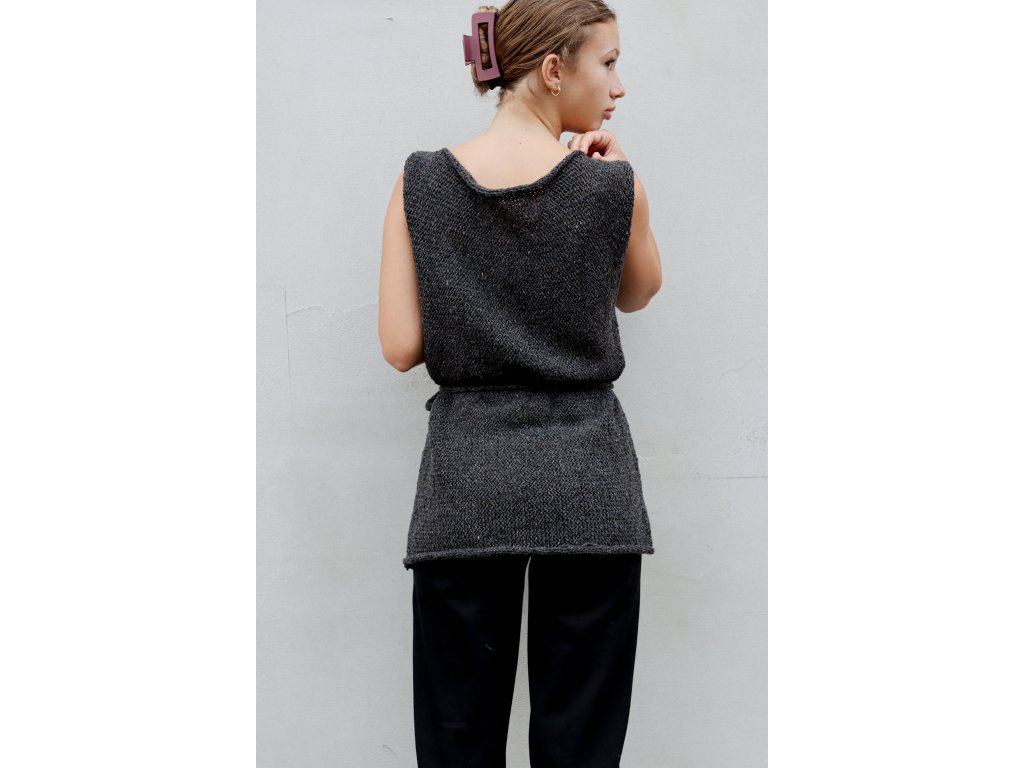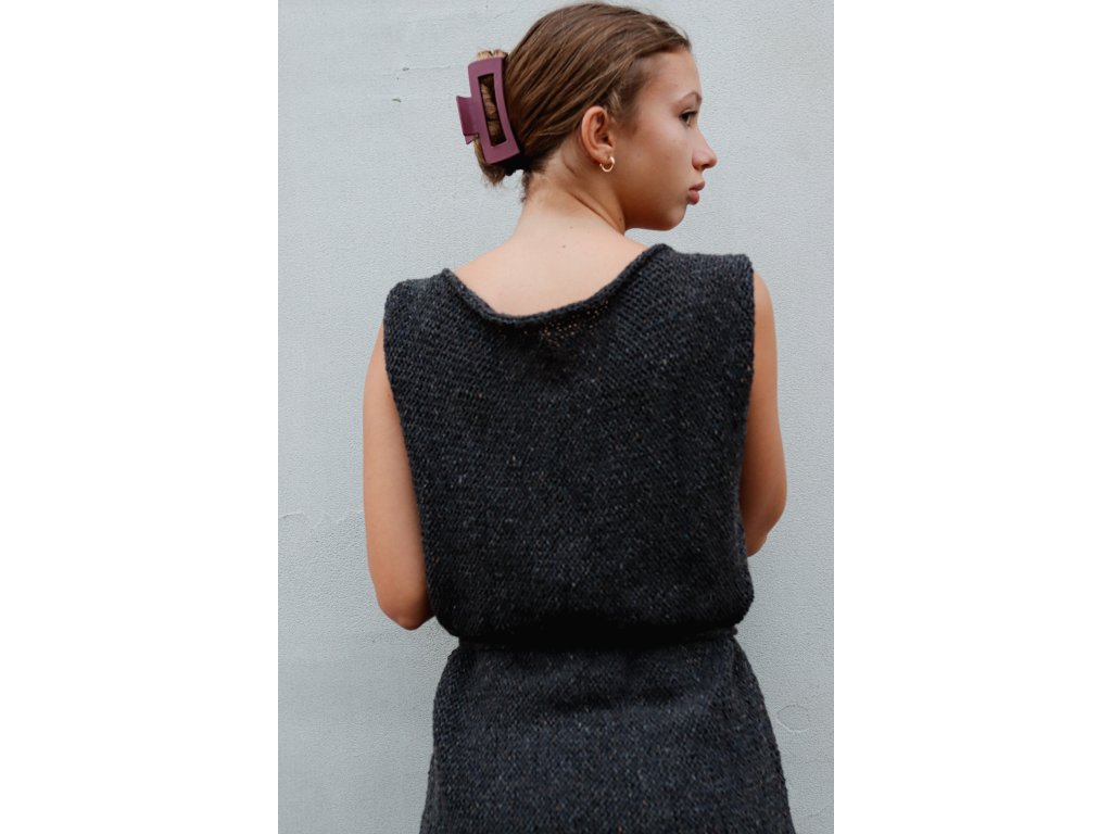 Vesta je upletená z nádherné tvídové příze složením 50% vlna, 25% alpaka a 25% viskóza. Je hřejivá, lehká a přírodního vzhledu. Dá se nosit na triko, rolák, šaty, nebo přímo na tělo.